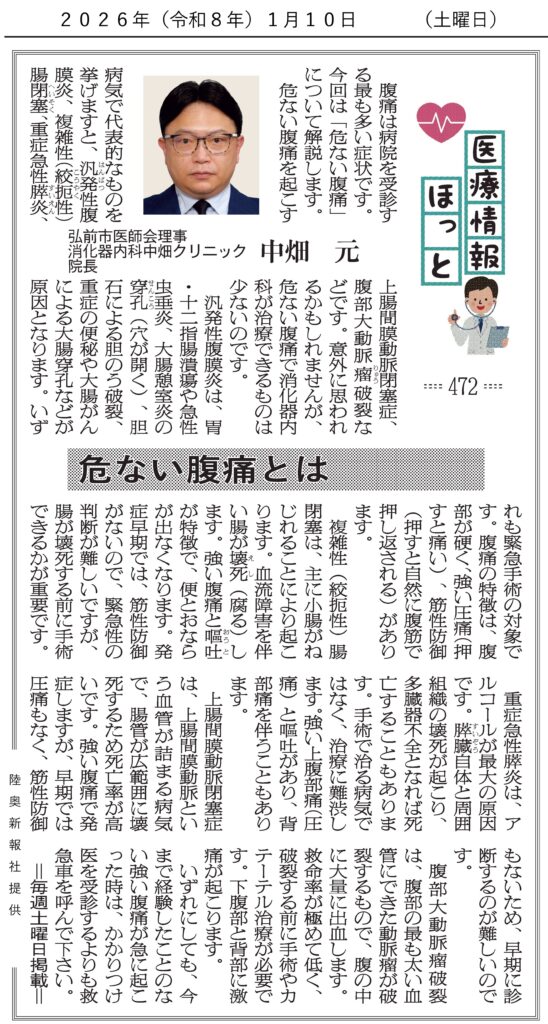 弘前市医師会理事 消化器内科中畑クリニック 院長 中畑 元 先生